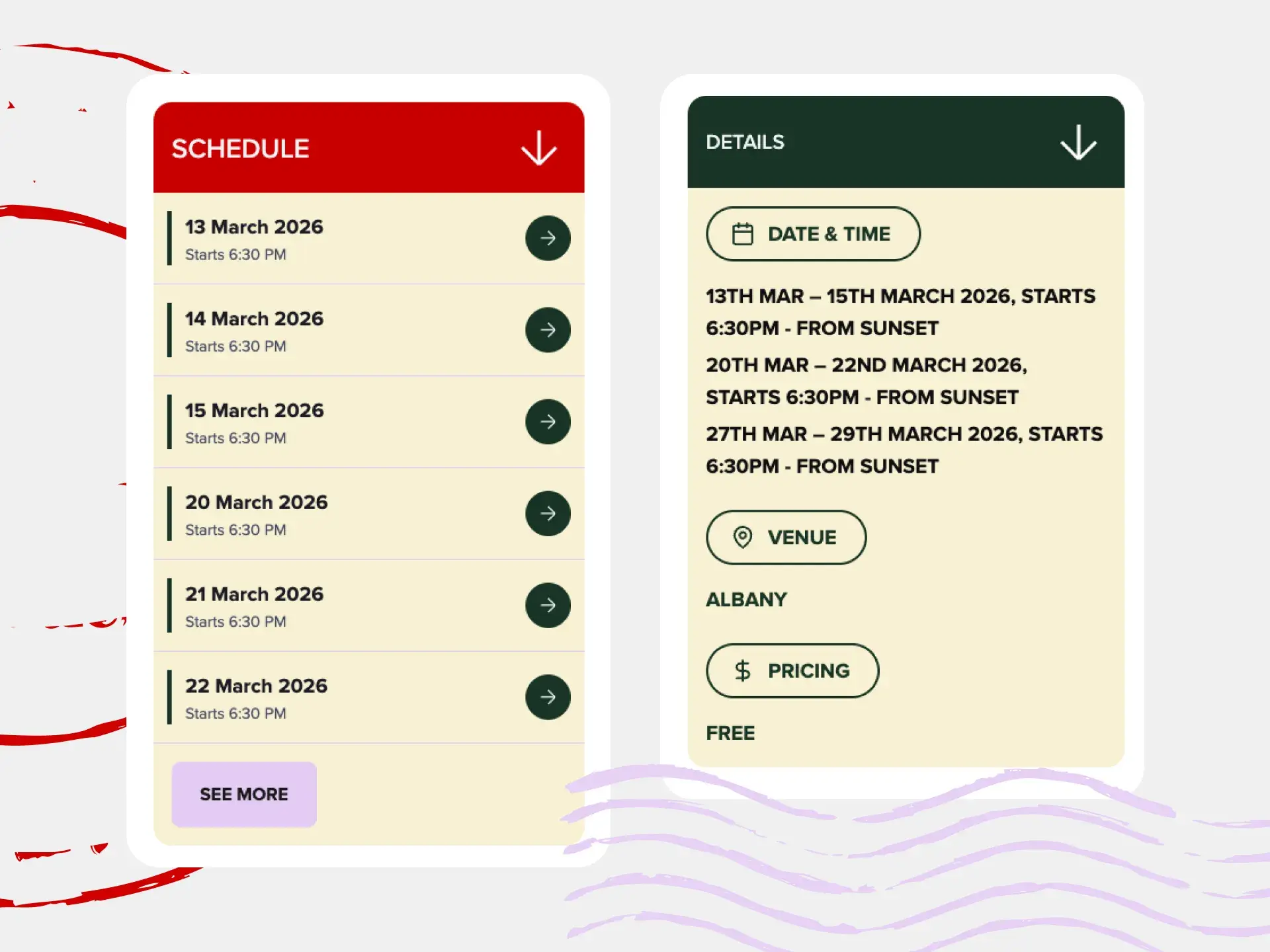 We wanted the website to focus on events first, utilising a complex event data structure on the back-end to build a fully functionality calendar component.